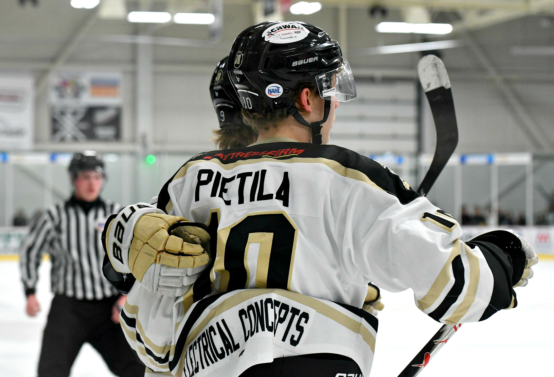 The Cats would be forced to kill an extended 5 on 3 to start the period, however, a minute later, Dennis Lominac streaked down the left wing, burned around the defender and shot five-hole on Anderson to tie the game at 2. It took Bismarck just 3 minutes after that to regain the lead as Noah Ziskie fed Cooper Williams cutting through the slot who deflected the puck into the back of the net to make it a 3-2 game in favor of the Cats. If you thought the drama ended there, you’d be wrong. 2 minutes later, the Tauros would tie the game on a deflected shot from Dane Ramirez. With it being a brand new hockey game, the offense slowed down until about 6 minutes remaining when Minot would regain the lead 4-3. With their backs against the wall, the Bobcats on the power play would strike with just over a minute remaining. It was George Poirier in his 150th career NAHL game, slapping home a one-timer to make it a 4-4 hockey game and send it to overtime.